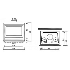 Входные патрубки O 125 мм, расположенные слева и справа в нижней части печи, служат для подводки воздуха для горения, вторичного дожига и отчистки стекла, позволяют брать воздух через систему трубопроводов для горения из другого помещения (например, подвального). Дымоходный патрубок O 250 мм снабжен встроенной шиберной заслонкой с дистанционным приводом, выполненным из нержавеющей стали, Позволяющей в зависимости от уровня горения регулировать тягу. В горизонтальном положении, положение закрыто, перекрытие патрубка шиберной заслонкой составляет 75%, что не позволит скапливаться угарному газу. Конвекционные патрубки O 125 мм в верхней части топки, служат для отвода теплого воздуха по трубопроводам от печи, для равномерного прогрева помещения и/или обогрева другой комнаты. Механизмы регулировок и подъёма двери, кроме привода шиберной заслонки, защищены кожухами от повреждения во время монтажа и эксплуатации. Предусмотрены съёмные проушины, для удобства транспортировки и монтажа. Футеровка топки выполнена из литьевого шамота.