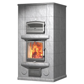 Верхнее подключение дымохода. Пристенная печь-камин с духовкой. 3 тепловой класс.