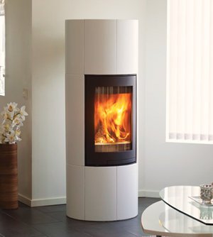 Корпус камина - цилиндрической формы. Тип расположения в помещении - островной или пристенный.